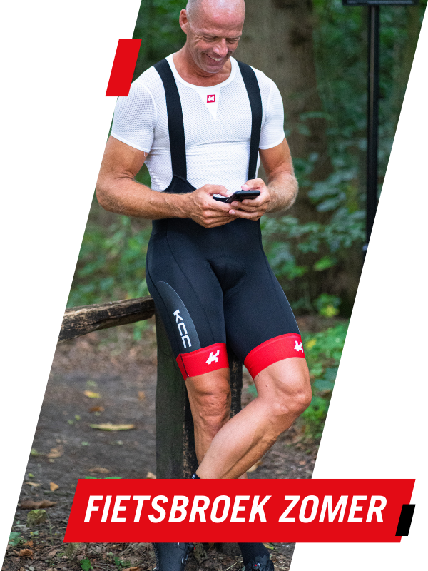 De KCC Cyclo fietsbroek met zijn topzeem is de trots van onze collectie. De broek is een combinatie van hoogwaardige materialen, anatomische en comfortabele pasvorm. Gemaakt van Zafiro Powerlycra van Miti. Shield endurance lycra voor de bedrukte delen. Platte naden zorgen voor minder irritatie en een mooie overgang tussen de panelen. Door KCC zelf ontwikkeld bovenstuk met luxe en soepele brede banden die niet krullen of dubbel gaan zitten. De constructie van het rugpand houdt de zeem goed in positie. Luxe 70 millimeter Marc siliconen band is conisch aangezet. Zorgt dat de broek perfect in positie blijft.