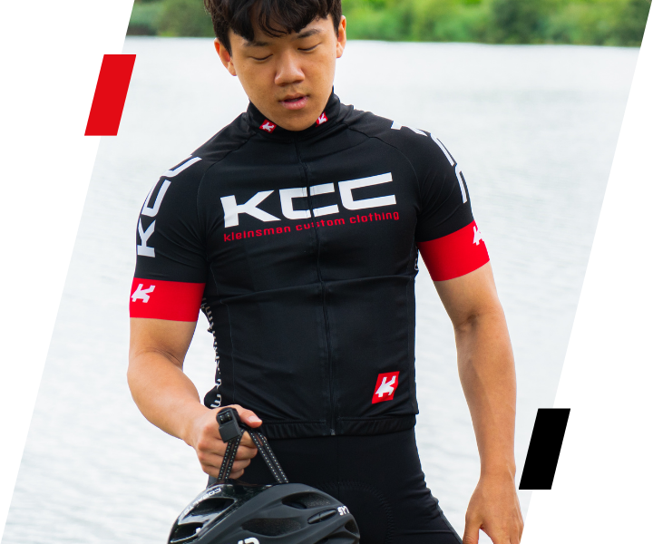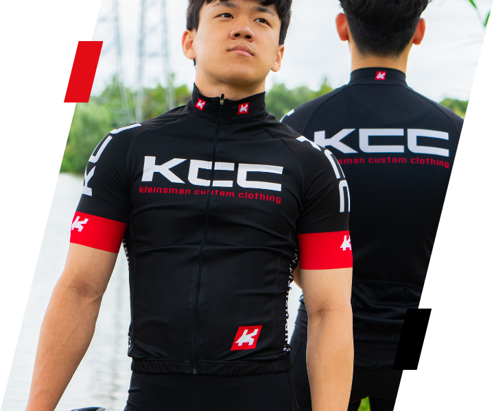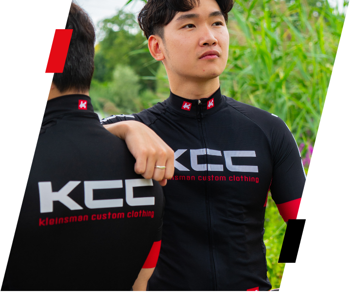 Comfortabel KCC fietsshirt met mooie uitstraling van honderd procent gerecyclede Italiaanse stof met YKK Vislon verborgen rits en langere mouwen. Drie diepe zakken, een vierde zakje met rits op rechterachterzak en KCC antislip.