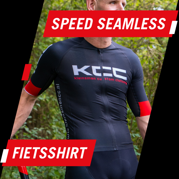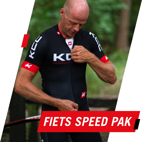 Voor wedstrijdrenners en de cyclosportieve fietser die waarde hechten aan snelheid en aerodynamica heeft KCC een Speedpak. Het pak betreft een aero shirt en broek in een pak met doorlopende rits. Een ontwerp waarin alle profs hun wedstrijden rijden is nu ook beschikbaar voor jouw bedrijf, club of organisatie. Het KCC Speedpak heeft twee getailleerde zakken op de rug om toch wat waardevolle spullen of sportvoeding mee te nemen.